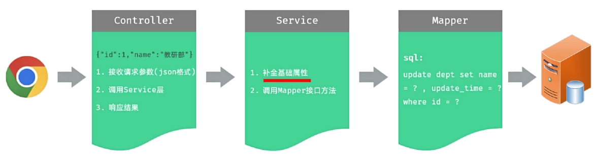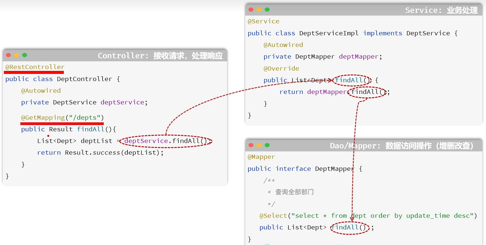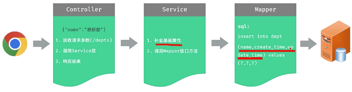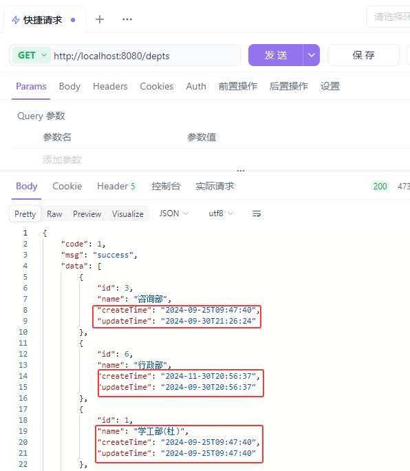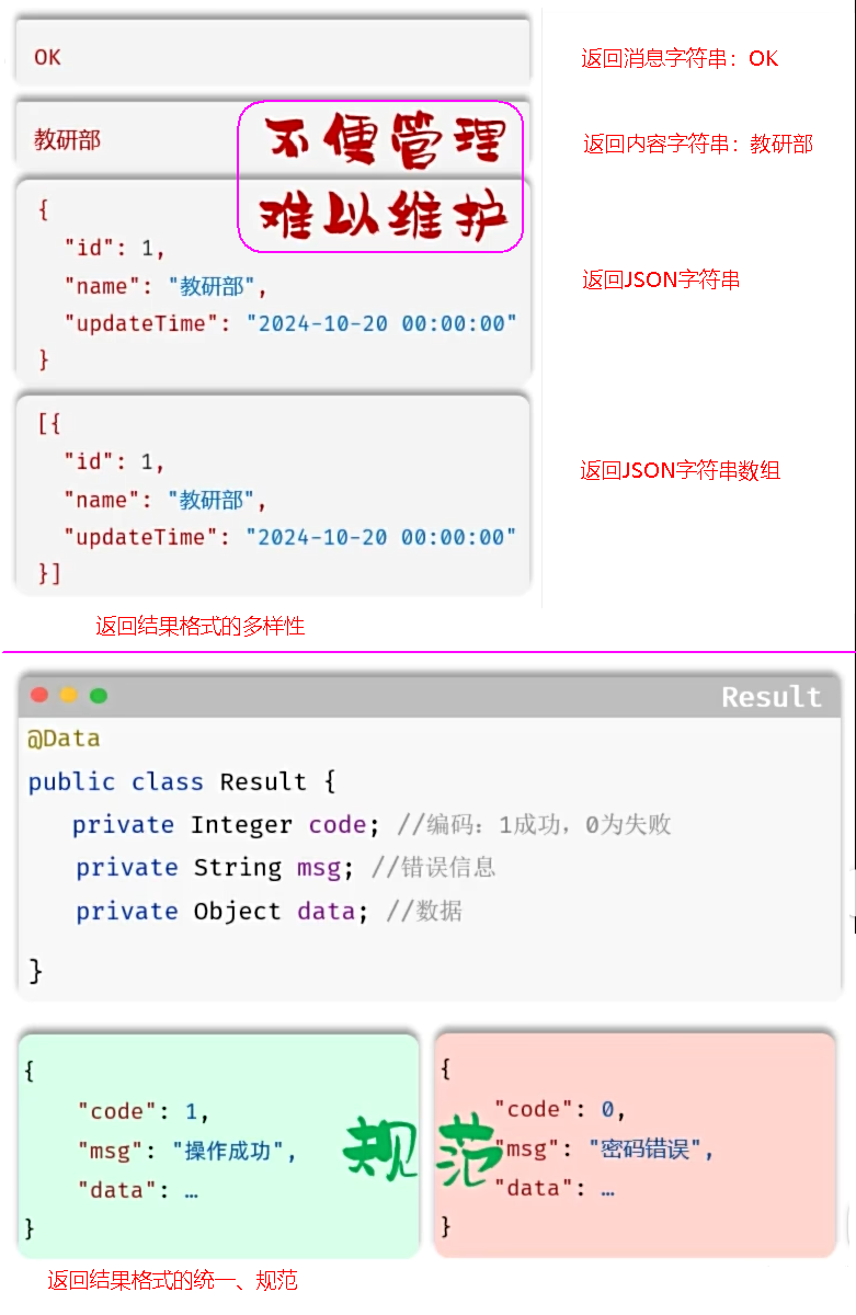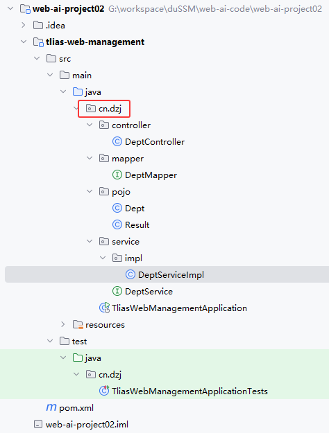 * 准备基础代码结构，并引入实体类Dept及统一的响应结果封装类 Result。