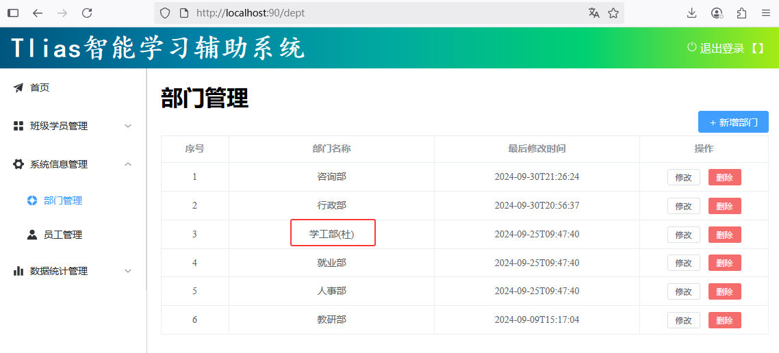 (2,'教研部','2024-09-25 09:47:40','2024-09-09 15:17:04'),