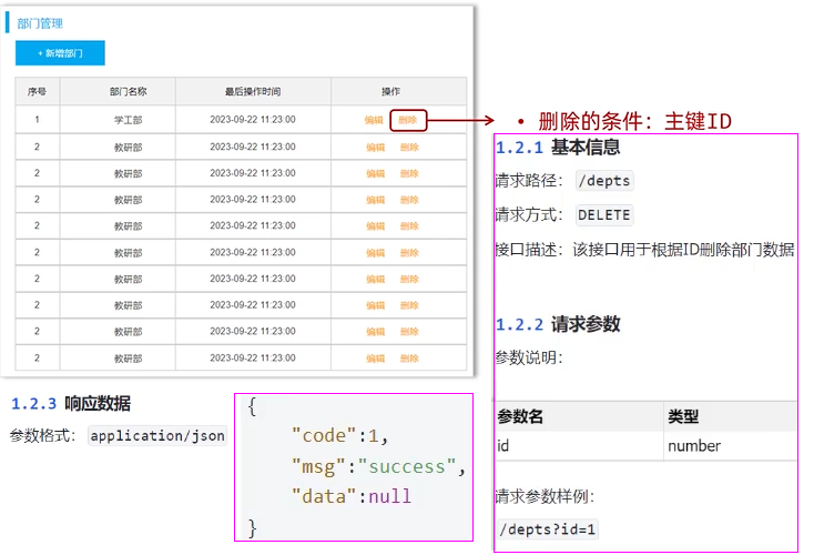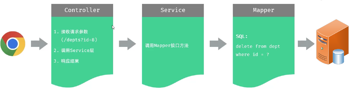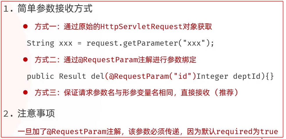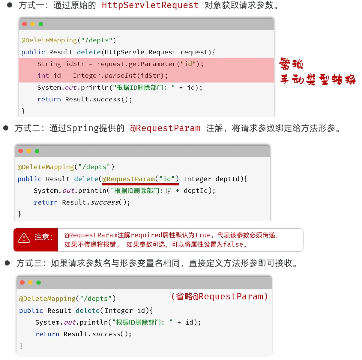 * 删除部门-方式三：省略@RequestParam（前端传递的请求参数名与服务端方法形参名一致）