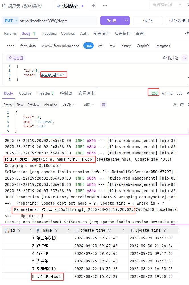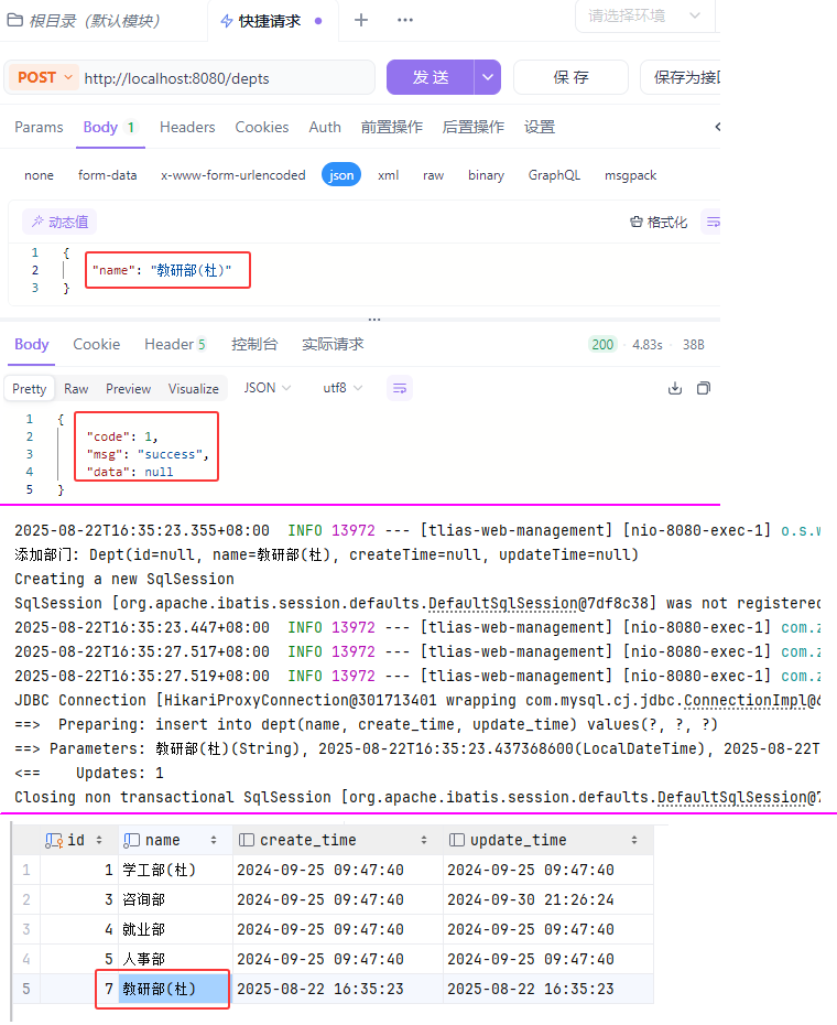 * 创建数据库表dept，并在application.yml中配置数据库的基本信息。