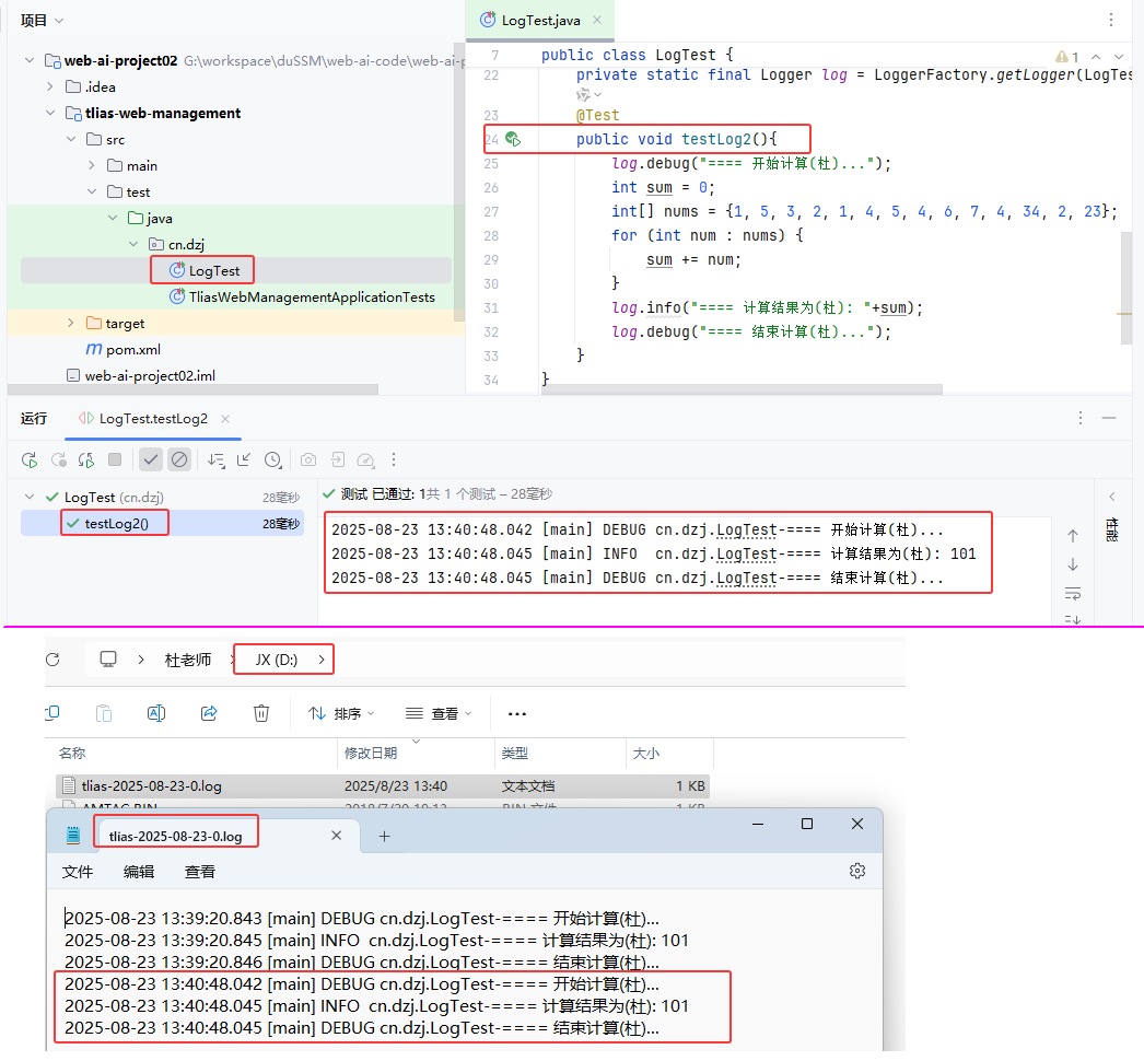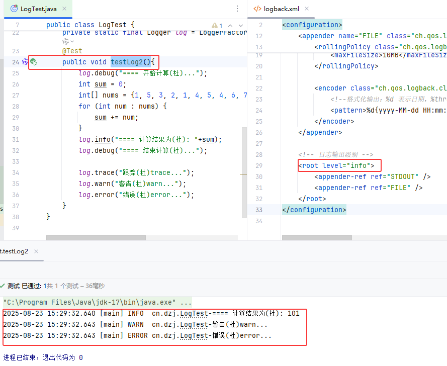 src/test/java/cn/dzj/LogTest.java  testLog2()方法中加入下列3行