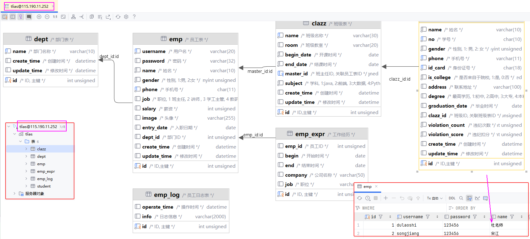 clazz_id  int unsigned not null comment '班级ID, 关联班级表ID',