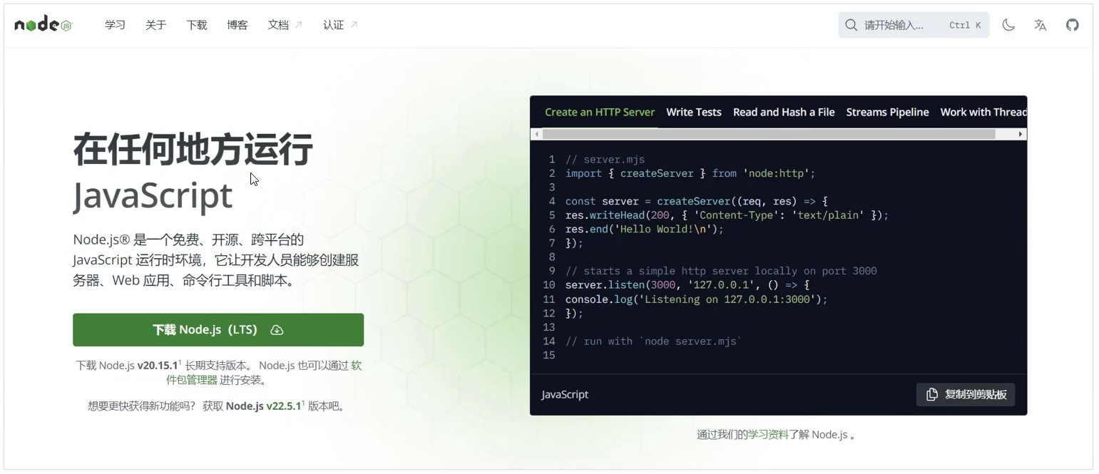 * 依赖环境NodeJS：Node.js®是一个免费、开源、跨平台的JavaScript运行时环境，它让开发人员能够创建服务器、Web应用、命令行工具和脚本。