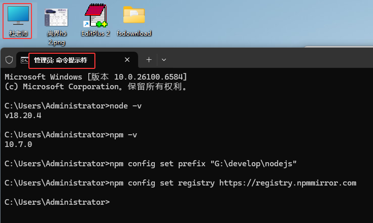 #### 配置npm的全局安装路径、切换为淘宝镜像，加速下载