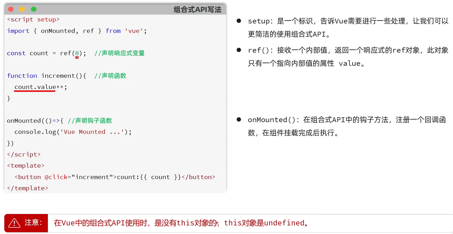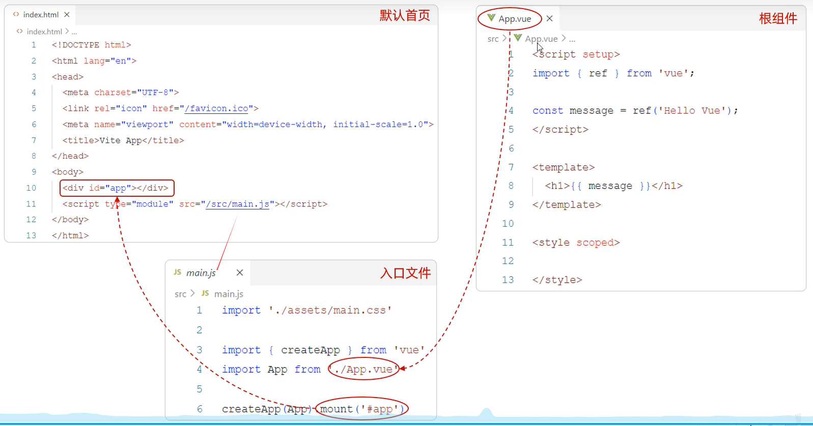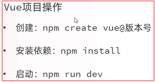 * 创建一个工程化的Vue项目，执行命令：npm create vue@3.3.4