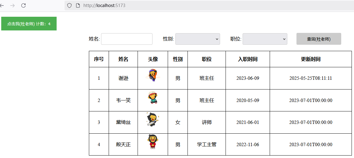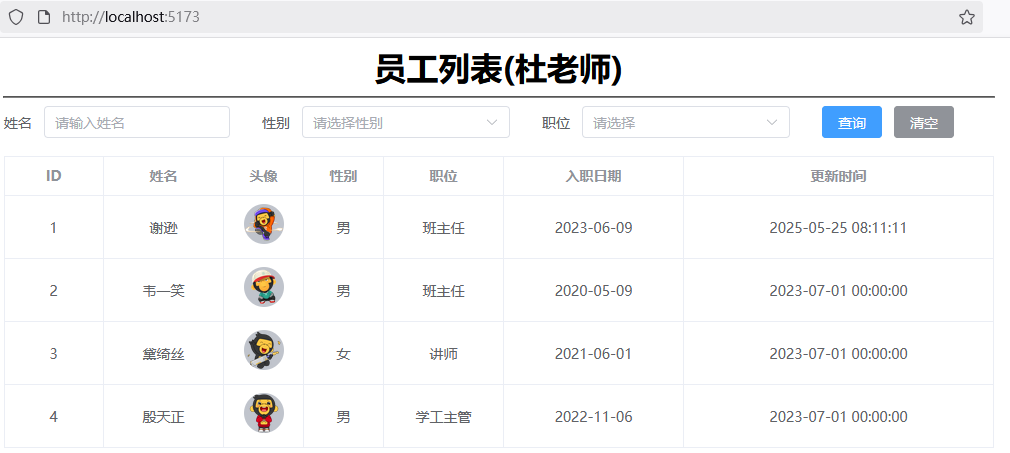 <h1 style="text-align: center; width: 70%;margin: 0 auto;">员工列表(杜老师)</h1>