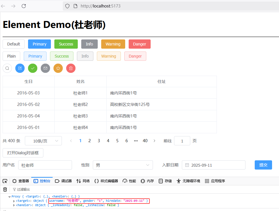 <!-- <h1>Element Demo(杜老师)</h1> -->