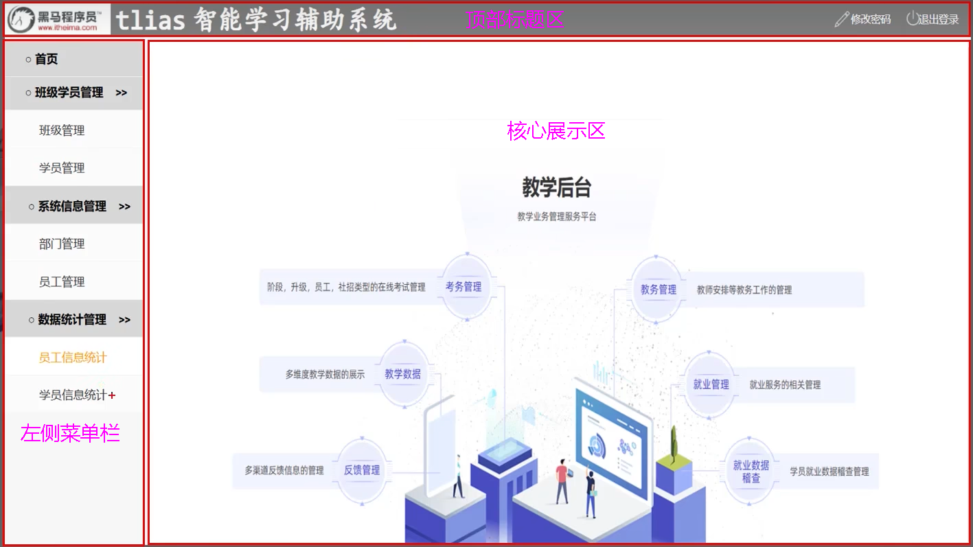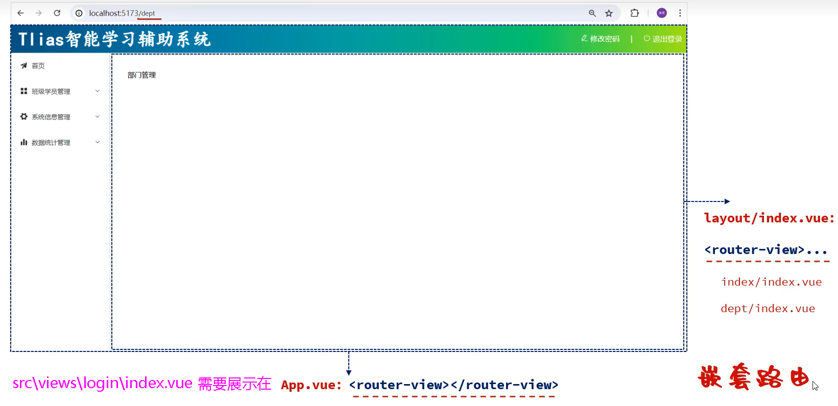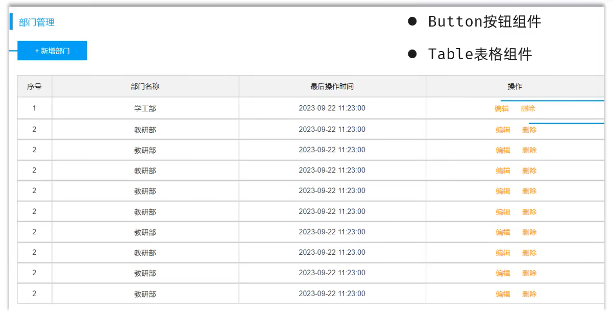 ## Day16 Web前端实战(案例)：整体布局、 部门管理