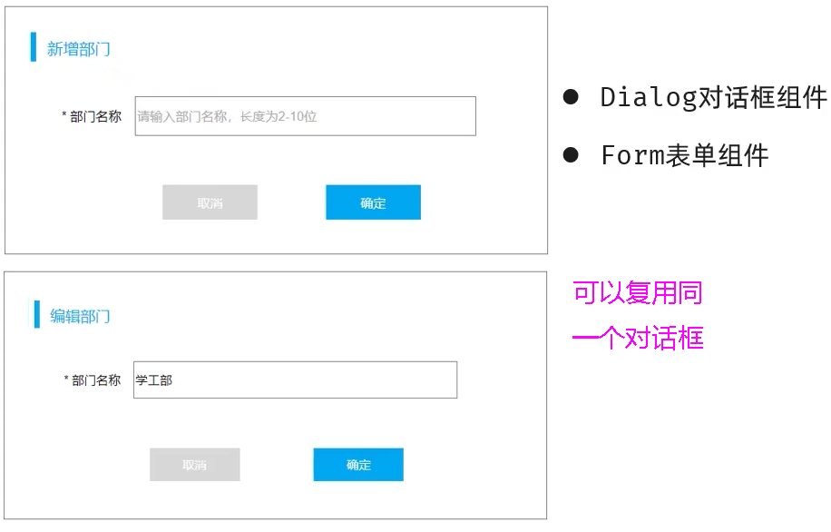 <el-input v-model="dept.name" placeholder="请输入部门名称，长度为2-10位" />