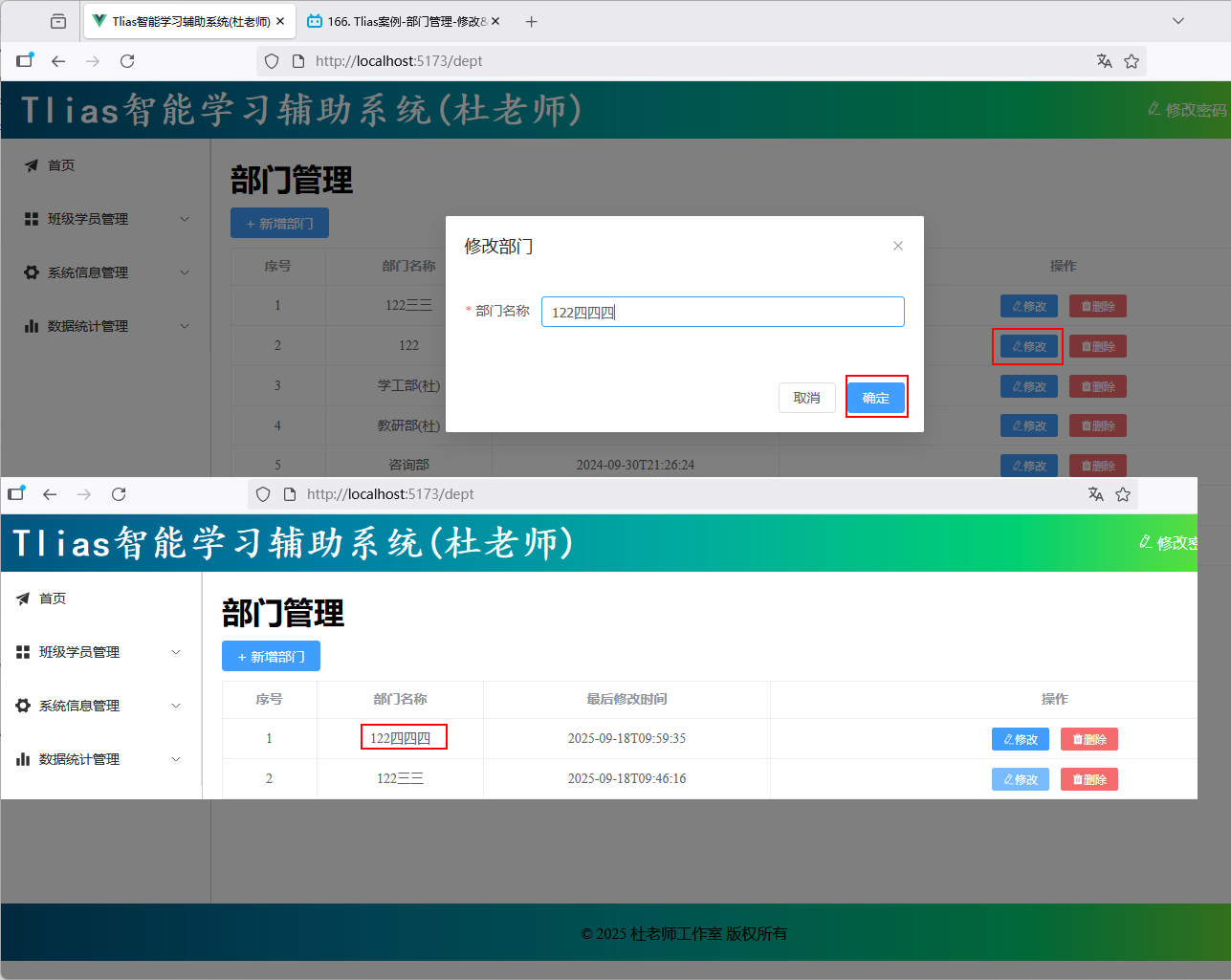 * 点击 确定 按钮，保存修改后的数据，完成数据更新操作。（保存修改）