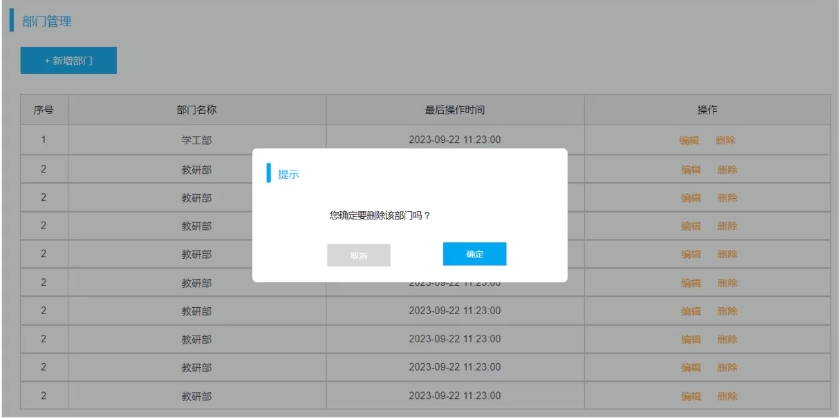 * 由于删除是一个比较危险的操作，为避免误操作，通常会在点击删除之后，弹出确认框进行确认。