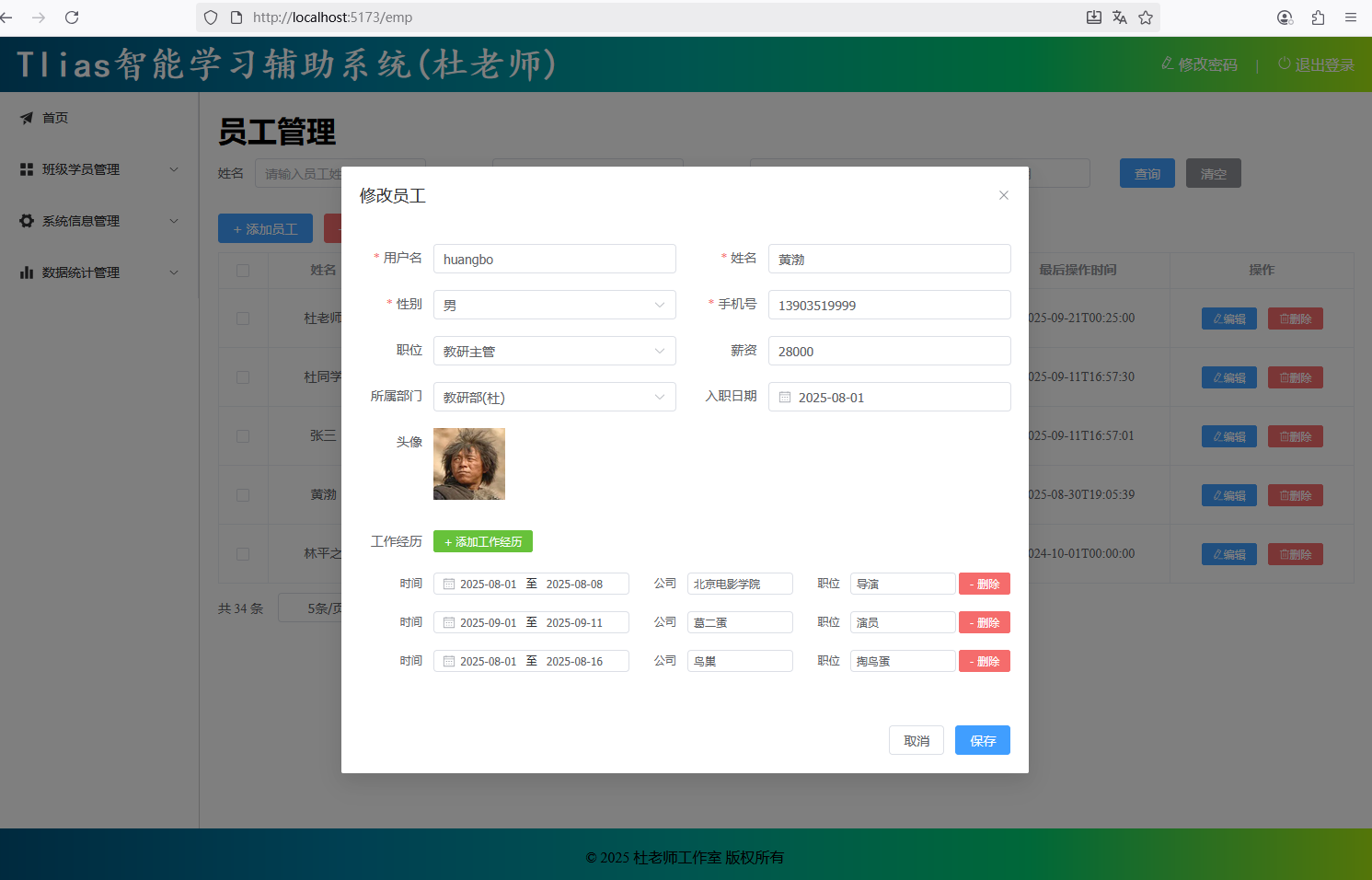* 员工管理-修改