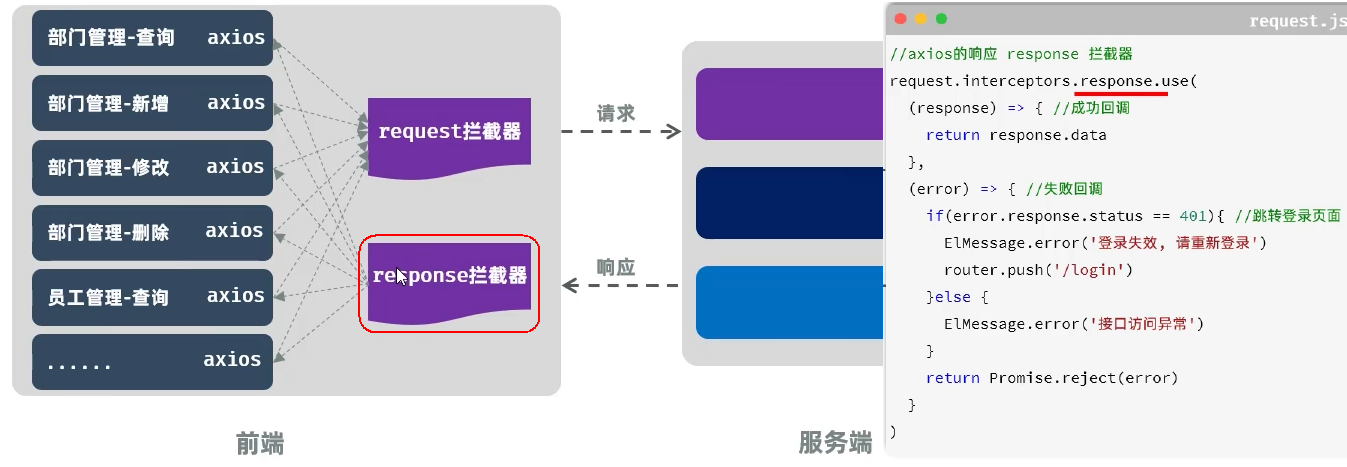 //axios的响应 response 拦截器