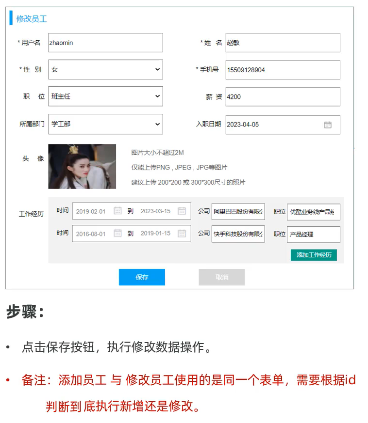 * 备注：添加员工与修改员工使用的是同一个表单，需要根据id判断到底执行新增还是修改。