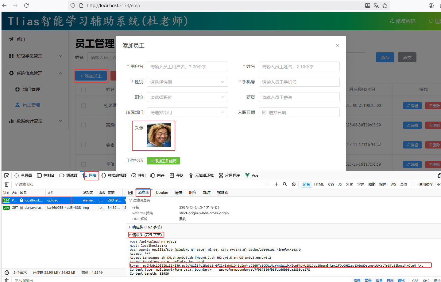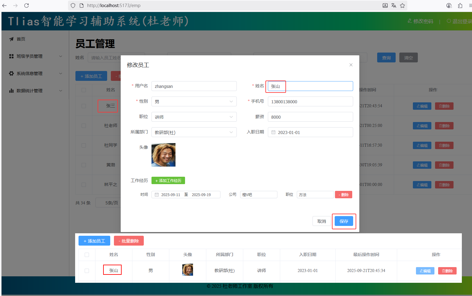 * 员工管理-修改