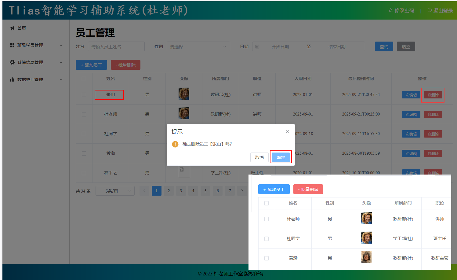 * 员工管理-删除