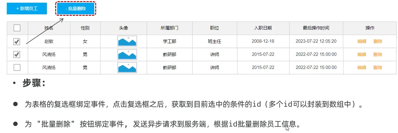 #### 删除员工-批量删除