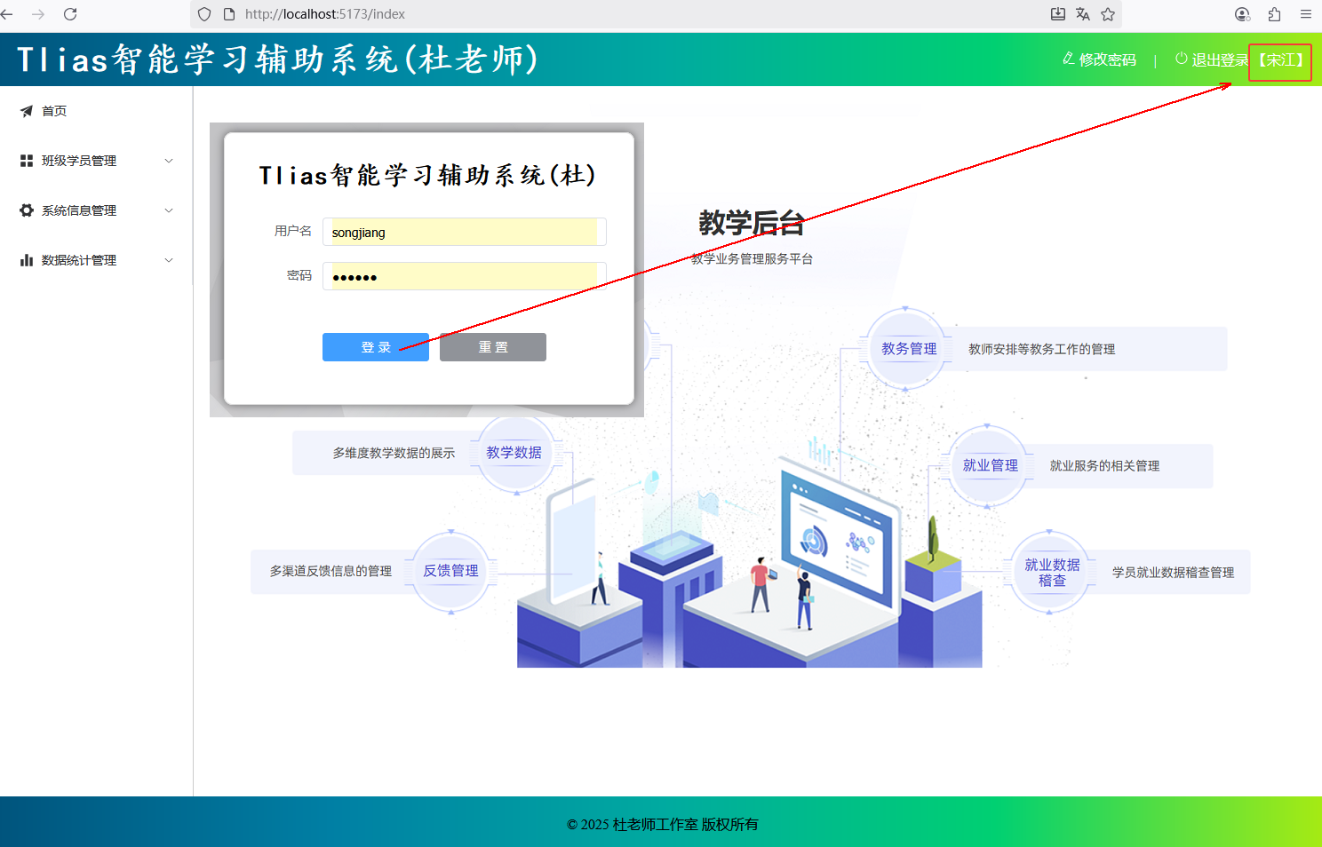* 展示当前登录用户。